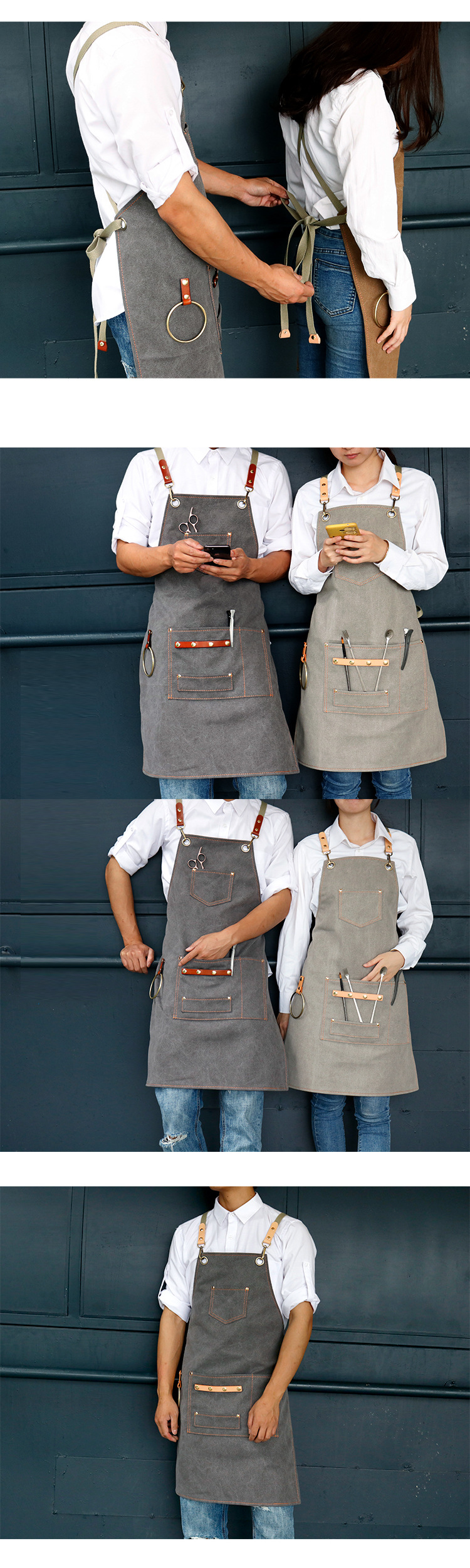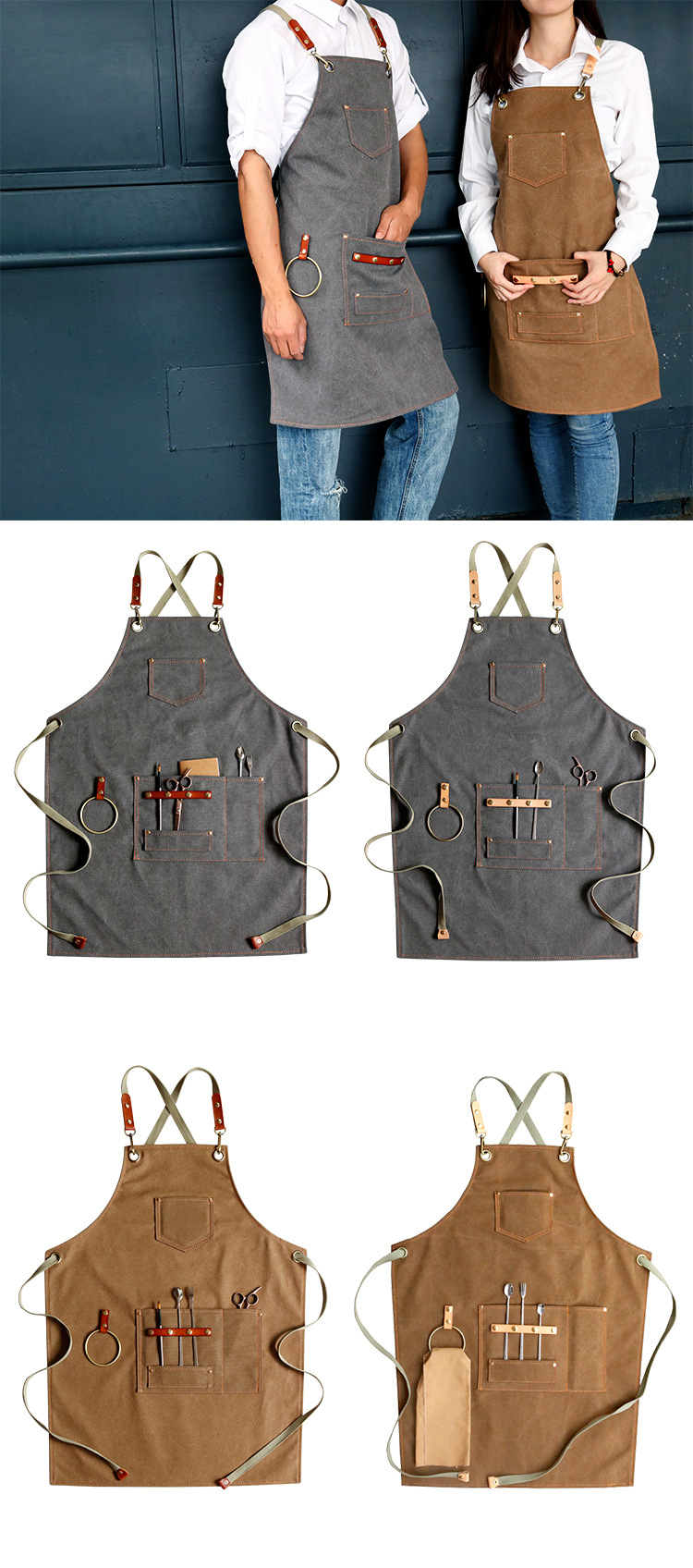 Apron Canvas Cross Strap Milk Tea Shop Cafe Baking Gardening Work Clothes