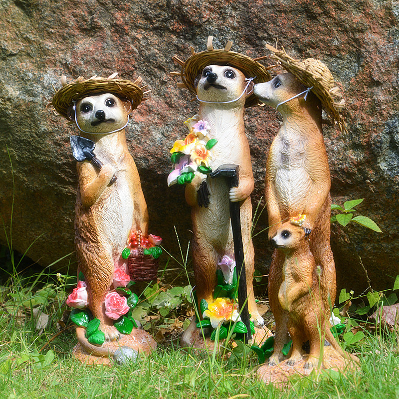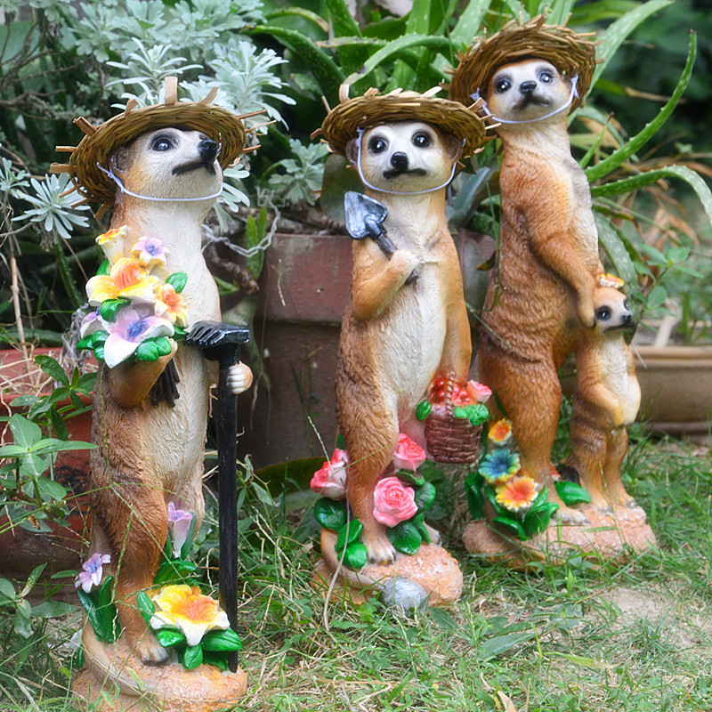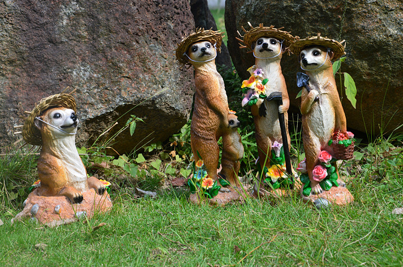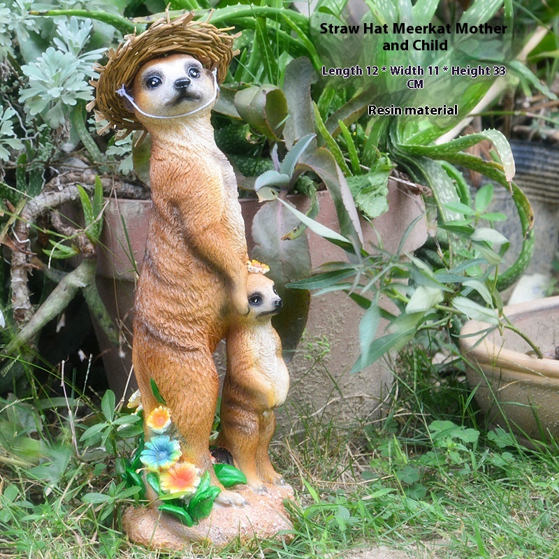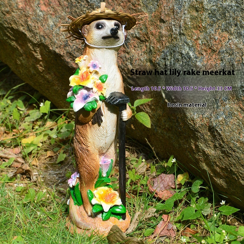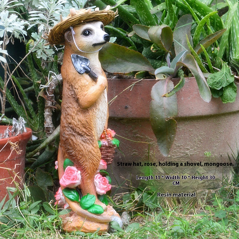 Straw Hat Mongoose Ornaments Gardening Bonsai Decoration Crafts